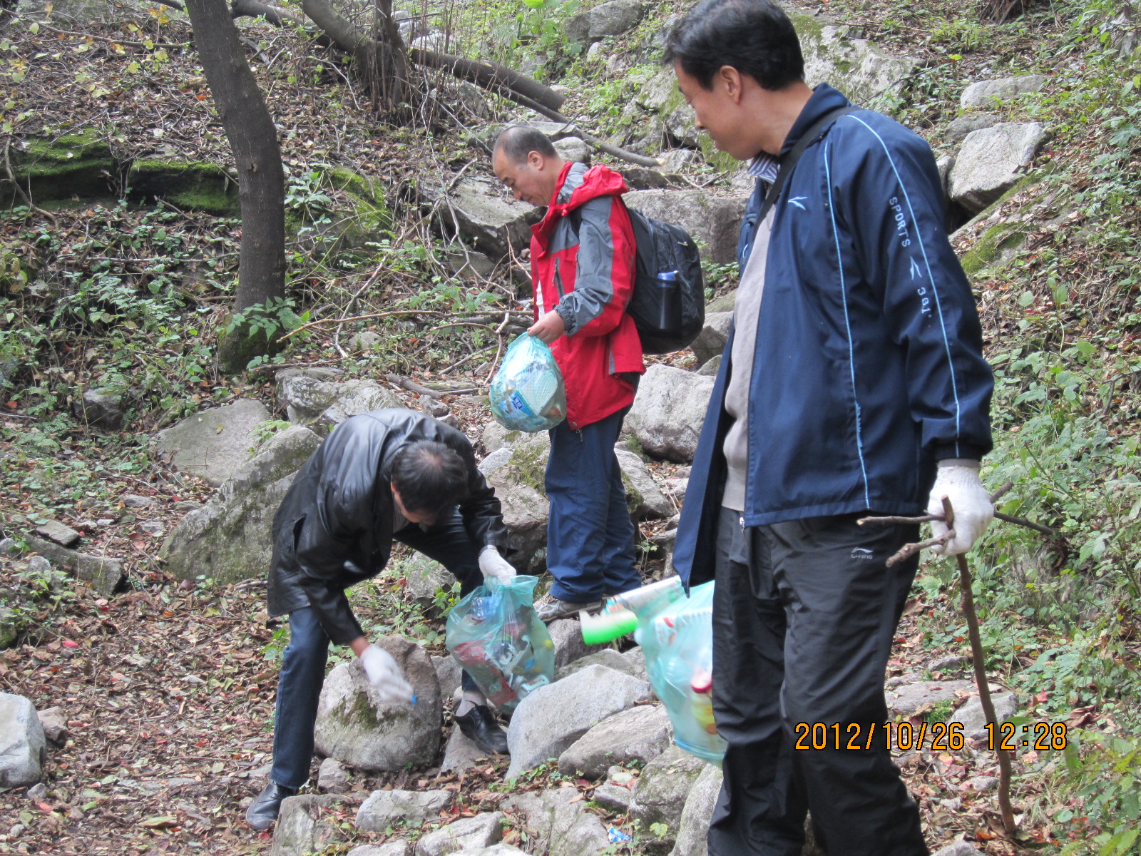 参观结束后,支部的同志利用随身携带的塑料袋、环保袋沿着山路一路捡拾垃圾,在“绿色长征”精神的指引下一路前行……