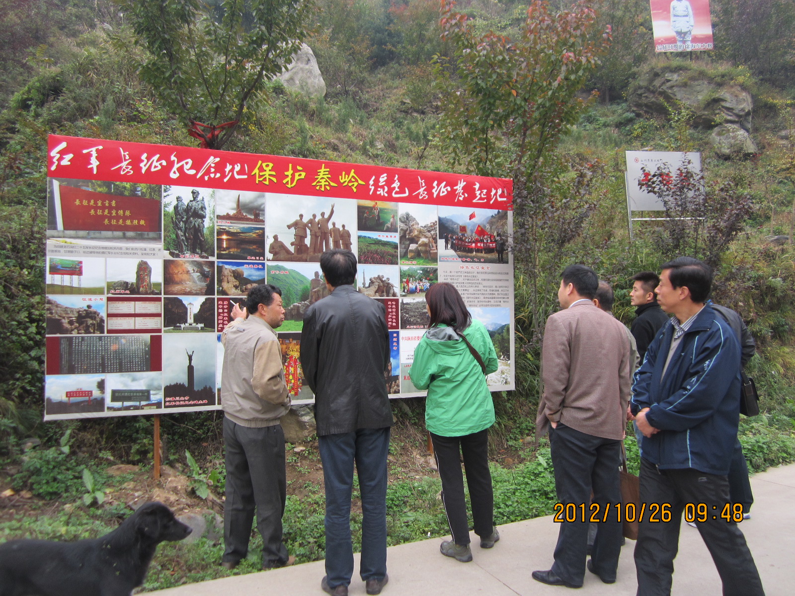 在公路两侧的展板前,郭警官向支部的同志讲述着每幅照片背后的感人故事,这些照片记录着郭警官重走红军当年曾经战斗和走过长征路线的点点滴滴。郭警官向支部同志介绍说,在长安大峪龙石沟发布《绿色长征宣言》具有极其重要而特殊的象征意义,既意味着“绿色长征”的艰巨性、复杂性和长期性,又昭示着“绿色长征”必将从胜利走向胜利——“绿色长征”必将完成伟大的历史使命。这就是一个经历了对越自卫反击战的老兵,一个从老山前线退伍的老兵,一个无法忘怀战地生活的老兵,一个视战友情谊比山重的老兵,一个心怀忧国之环保,寄希望于青少年爱国主义、环保意识教育的老兵向我们发出的绿色倡议,用一个老兵的朴实无华的举动唱响了爱国主义这一中华民族复兴永恒的主旋律。
