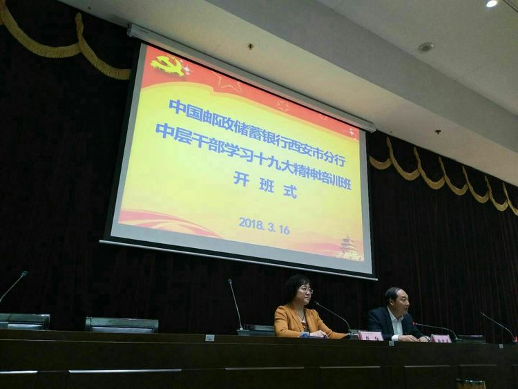 3月16日上午,随着庄严的国歌声响起,中国邮政储蓄银行西安分行中层领导干部学习党的十九大精神培训班在西安市行政学院隆重开班。这是中国邮政储蓄银行西安分行在全系统深入学习宣传贯彻党的十九大精神的重要举措,旨在提高政治站位,强化政治思想武装,深刻理解和掌握党的十九大提出的重大战略部署和目标,推进习近平新时代中国特色社会主义思想在本行业落地生根,在本系统开花结果。