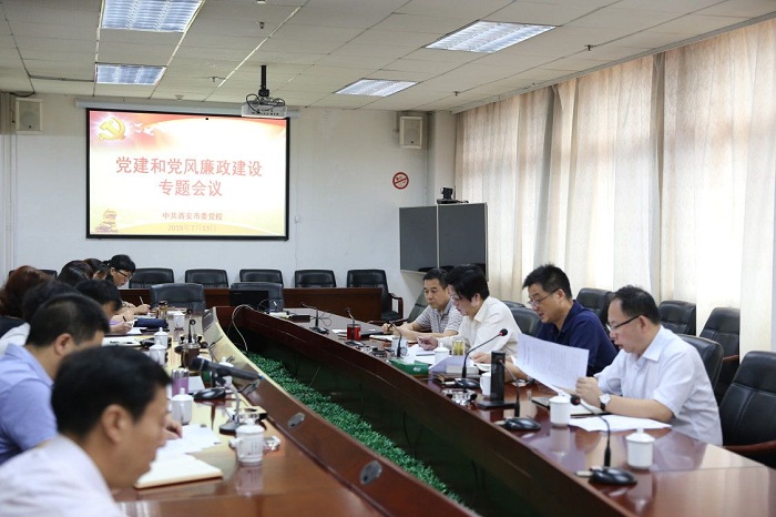 2018年7月13日上午,西安市委党校召开党建和党风廉政建设专题会议,会议由常务副校长王华旭主持,校委班子成员、校党建领导小组成员和党支部书记参加了会议。