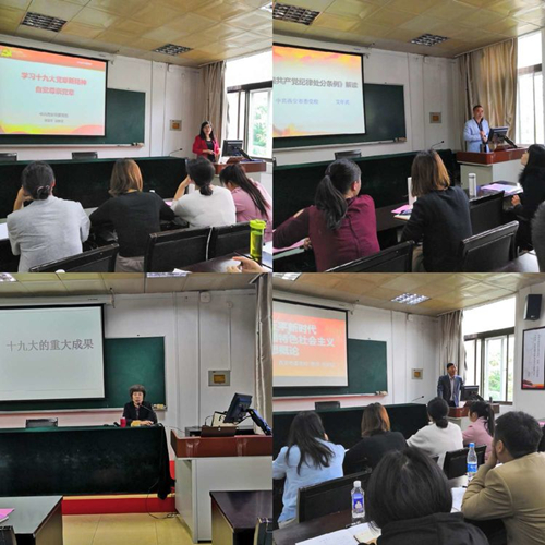 接下来,我校教师对学员进行了为期三天的专题授课:科社教研部张钧巨老师向学员解读"习近平新时代中国特色社会主义思想概论";党史党建教研部薄谊萍老师专题讲授"学习党的十九大新党章精神 自觉崇尚党章";党史党建教研部艾年武老师向学员解读"新颁布纪律处分条例";党史党建教研部李清芳老师专题讲授"全面从严治党——党的十九大精神解读"。
