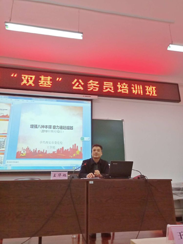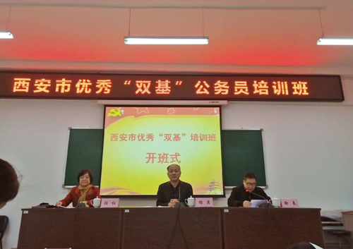 根据人力资源和社会保障部、国家公务员局《“十三五”行政机关公务员培训纲要》、《2018年西安市干部教育培训计划》和《西安市公务员局关于2018年公务员培训教育工作安排意见》,第一期西安市优秀“双基”公务员培训班于11月12日在我校正式开班。