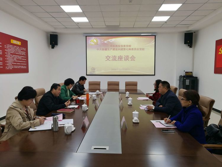 10月22日上午,中共新疆生产建设兵团第七师委员会党校常务副校长陈继春一行3人来我校座谈交流。我校副校长徐来主持座谈会,教务处、公培处、科研处主要负责人参加。