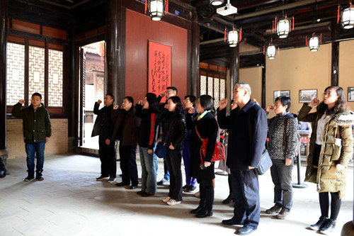 随后,在当年青训班学员上课的地方,全体党员在党旗的见证下,右手握拳,庄严宣誓,再次用誓词表达了对党的无限忠诚和崇高敬意。通过此次重温入党誓词的活动,更加激发了大家爱党、爱国的热情。
