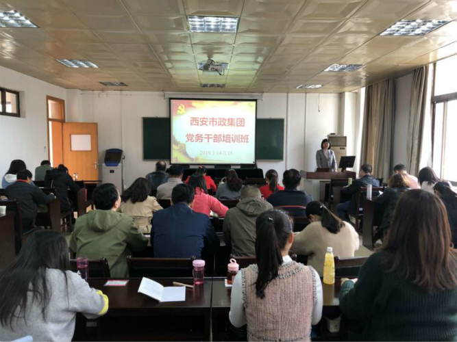 3月14日上午,西安市政集团党务干部培训班在我校顺利开班。来自西安市政建设集团公司的各分公司、政工部、机关支部的党支部书记和组织委员共44人参加本次培训。