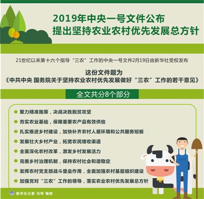 党的十九大报告提出实施乡村振兴战略。今年的中央一号文件进一步强调,坚持农业农村优先发展总方针。今明两年是全面建成小康社会的决胜期。坚持农业农村优先发展总方针,完成好“三农”领域必须完成的硬任务,对于有效应对各种风险挑战赢得主动、确保经济持续健康发展和社会大局稳定、如期实现第一个百年奋斗目标具有基础性作用。