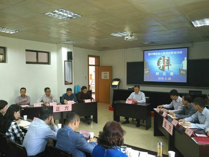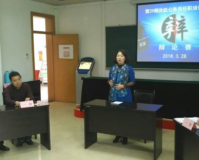 3月28日下午,第二十九期处级公务员班在教学楼202教室成功举办辩论赛。学员处处长刘艳参加活动并讲话,景莹、汪锐两位老师受邀担任本场比赛的评委。