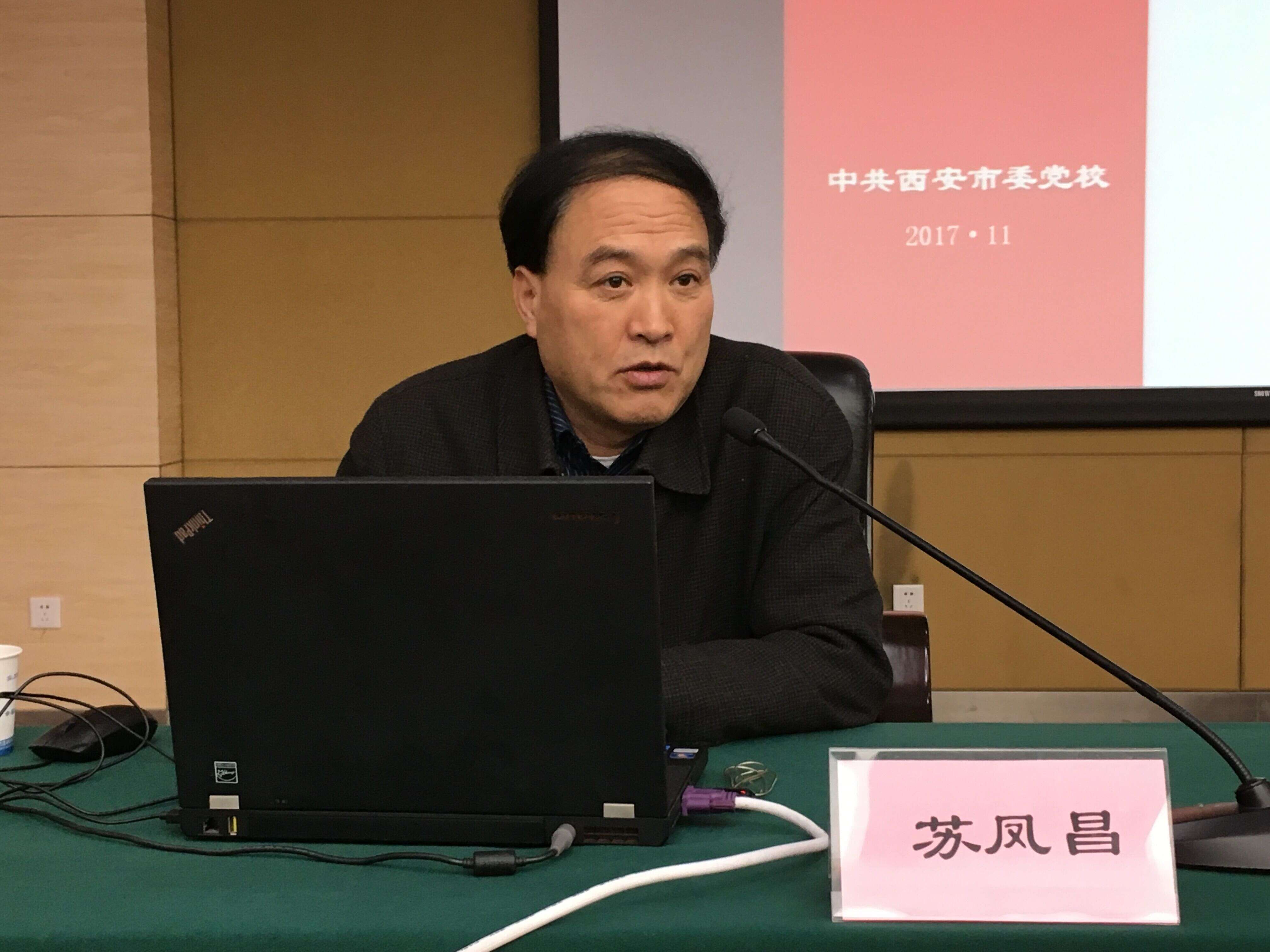 2.校内认真讲授。苏凤昌同志忠诚党的干部教育事业,积极为党校主体班学员授课,先后在主体班开设了《(论十大关系)导读》《习近平总书记来陕视察重要讲话精神解读》《十九大精神学习辅导》《以新理念推动我国经济高质量发展》《追赶超越建设国际化大都市》《当前经济形势与展望》《贯彻新发展理念 建设现代化经济体系》《西安民营经济发展》《西安国家中心城市建设研究》等40多个新教学专题,特别是在市委举办的全市局级领导干部学习党的十八大、十八届三中全会、十九大、习近平新时代中国特色社会主义思想以及习近平总书记系列重要讲话精神,以及“打赢脱贫攻坚战,实施新时代农业高质量发展”的重大培训活动中,所讲专题质量全评为优,连续多年获最受欢迎教师称号。