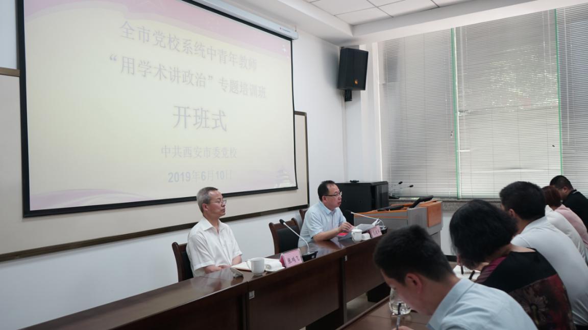 6月10日,全市党校系统中青年教师“用学术讲政治”专题培训班在我校开班。常务副校长张鹏飞出席并讲话,副校长范建军主持开班式。