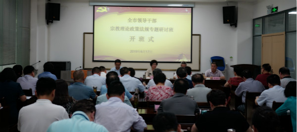 市民宗委主任李永奇,市委统战部巡视员李社民出席开班式。各区县统战部长、民宗局长,市委统战工作领导小组部分成员单位和市级相关部门分管宗教工作的同志共计50余人参加此次研讨班学习。(撰稿/摄影:蔡慧)