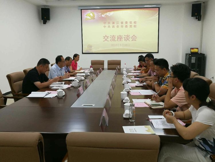 8月18日下午,我校又迎来了一批客人。浙江省委党校干部教育学院院长李献东一行八人到我校调研座谈。副校长范建军主持召开了座谈会,办公室、教务处、学员处、公培处相关同志参加。