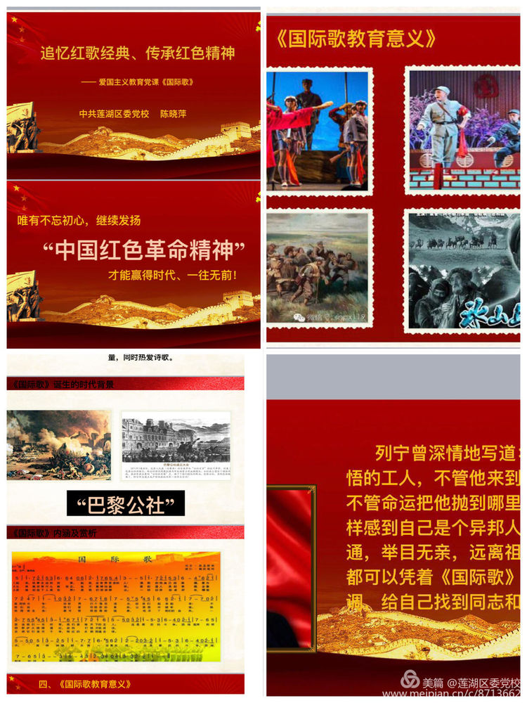 应离休老干部们的心愿,党课学习分为两部分。第一部分,结合中国共产党成立98周年和即将迎来的中华人民共和国70周年华诞,追忆和重温红色革命精神,学习和传唱红色经典歌曲《国际歌》。从《国际歌》的创作背景、词曲作者以及内涵和教育意义等方面进行深入了解和学习,重忆红色革命时期那激情燃烧的岁月。