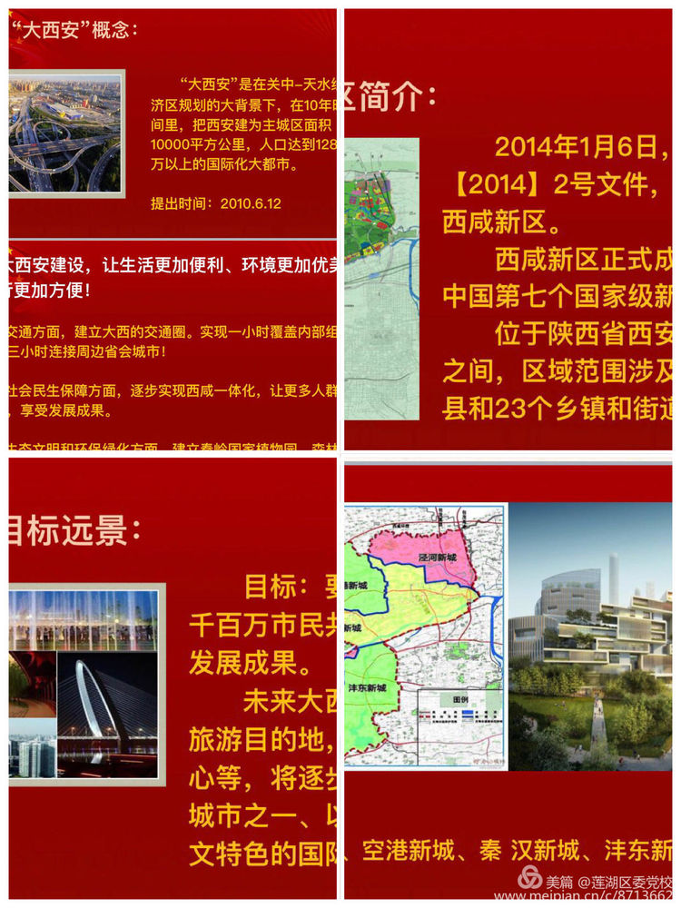 第二部分,中国共产党在红色革命精神的带领下,全国各族人民取得了举世瞩目的成就,结合我们所生活的这座千年古都大踏步的发展,简要介绍了建设具有历史文化特色国际化大都市的“大西安”的规划和发展。