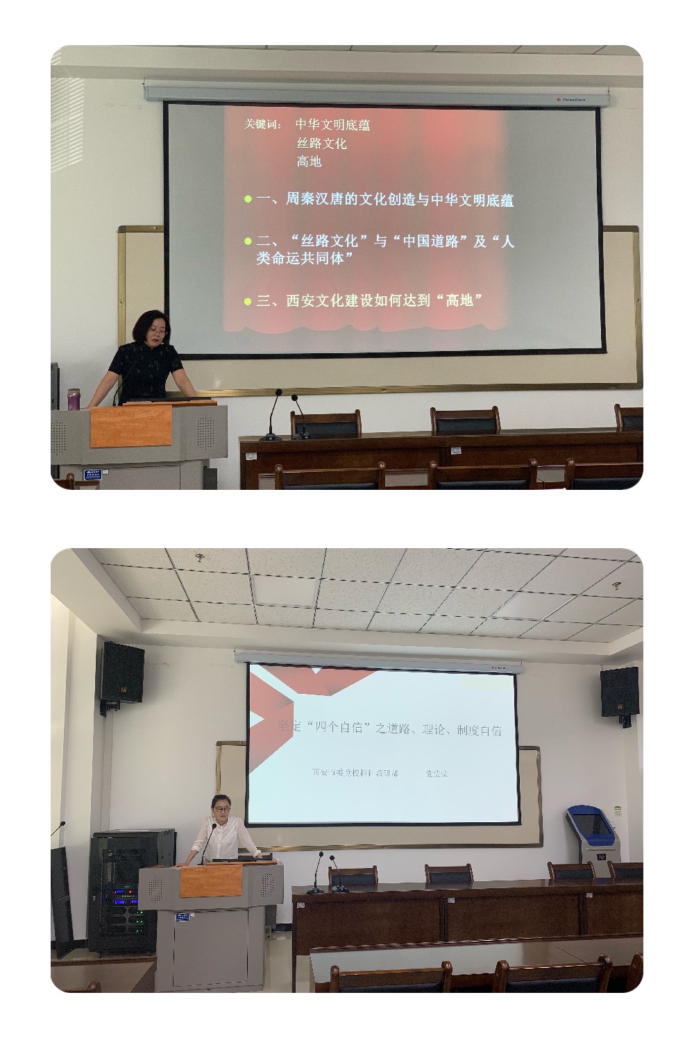 6名教师就各自申报专题的框架、教学设计和基本内容用30分钟的时间进行说明,评委们对各个专题进行了认真点评,并提出了具体的修改意见,最后评委对6个专题的教学提纲和说课情况进行打分。