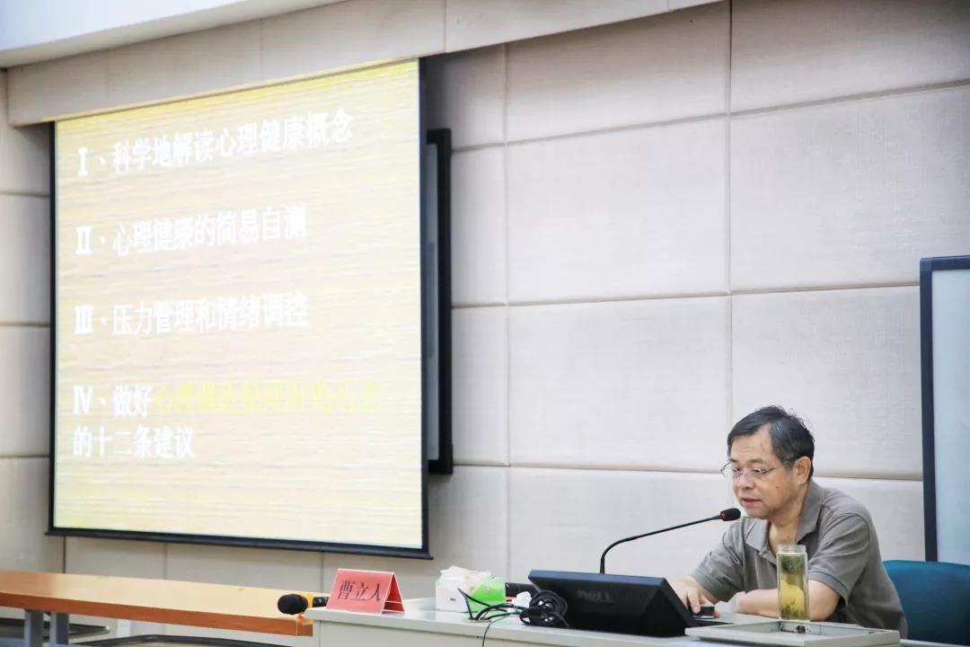 上午,浙江大学心理与行为科学系教授、浙江大学认知与发展心理学研究所副所长曹立人作《干部心理压力调适与情绪管理》专题讲座。学员们深入了解了心理健康概念;现场参与了心理健康测试;学习了压力管理和情绪调控;听取了曹立人关于心理和调适保持阳光心态的十二条建议。