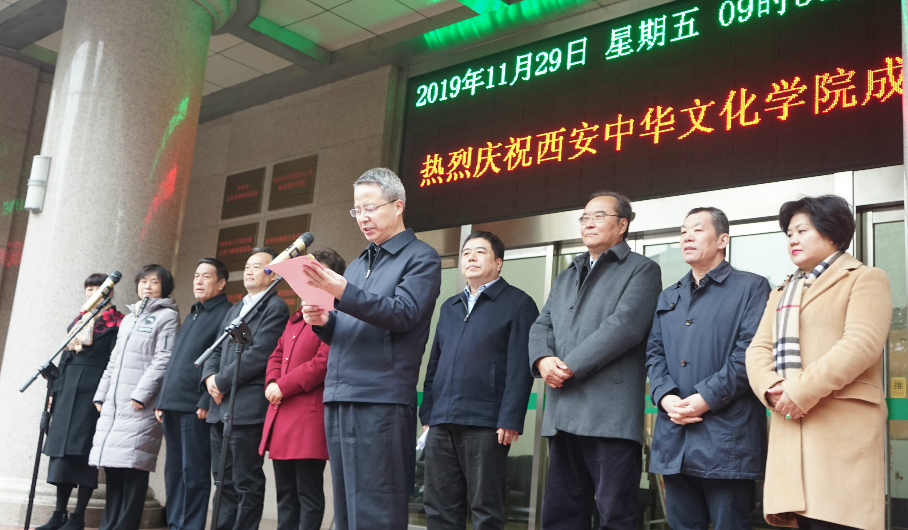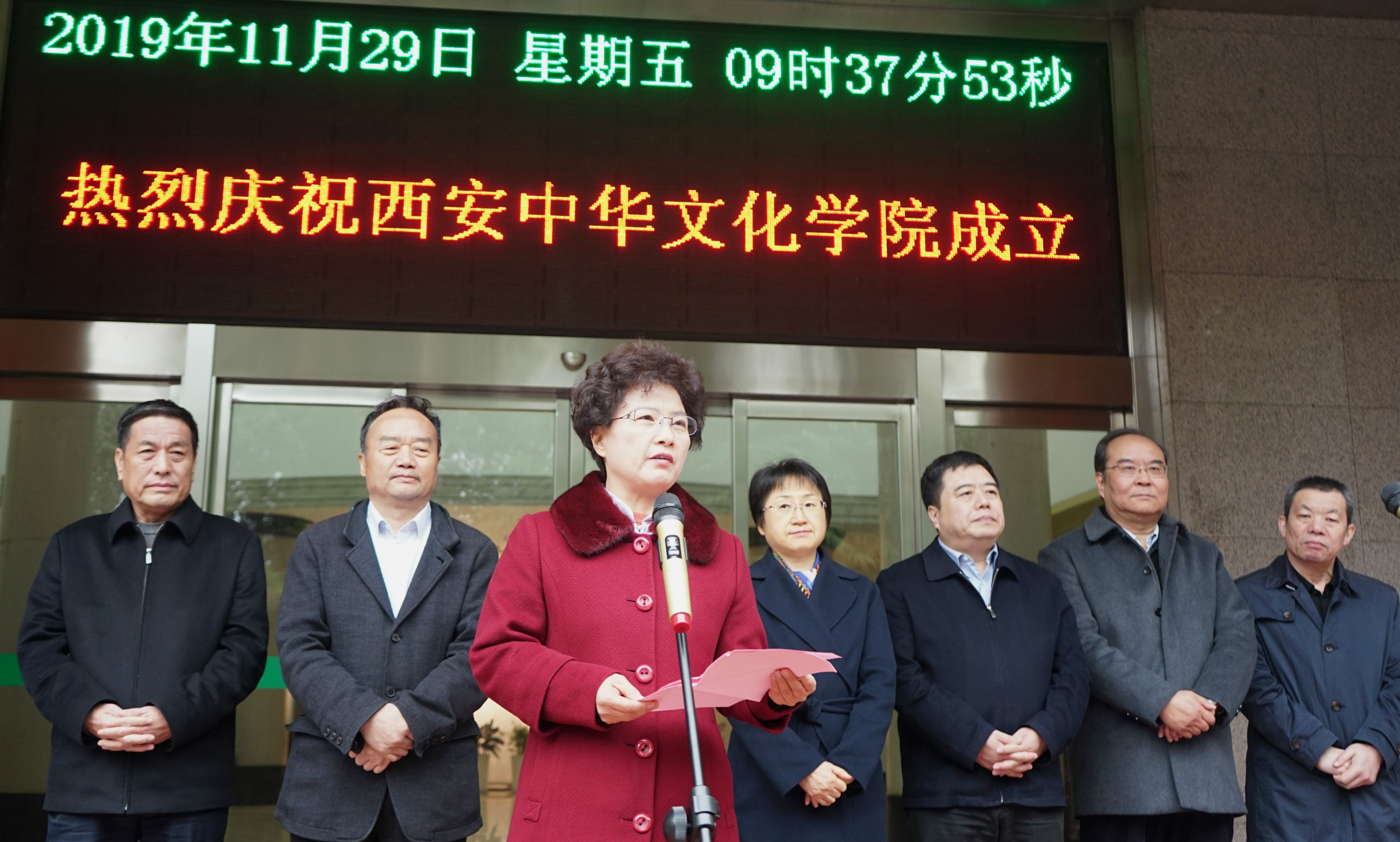 11月29日,西安中华文化学院在我院正式挂牌成立。市委常委、市委统战部部长史晓红,省委统战部副部长、省社会主义学院党委书记、常务副院长白慧芳出席并共同为西安中华文化学院揭牌。市委统战部常务副部长张少纯宣读成立西安中华文化学院的批复文件。我院院长张鹏飞主持挂牌仪式。