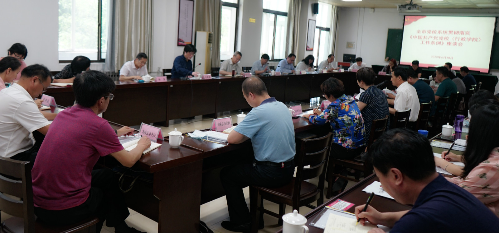 6月18日下午,西安市全市党校系统贯彻落实《中国共产党党校(行政学院)工作条例》(以下简称《条例》)座谈会,在西安市委党校(行政学院)召开。会议学习了全国党校(行政学院)校(院)长会议精神和省委、市委关于认真学习贯彻《条例》的通知精神。西安市委党校常务副校(院)长张鹏飞出席并讲话。
