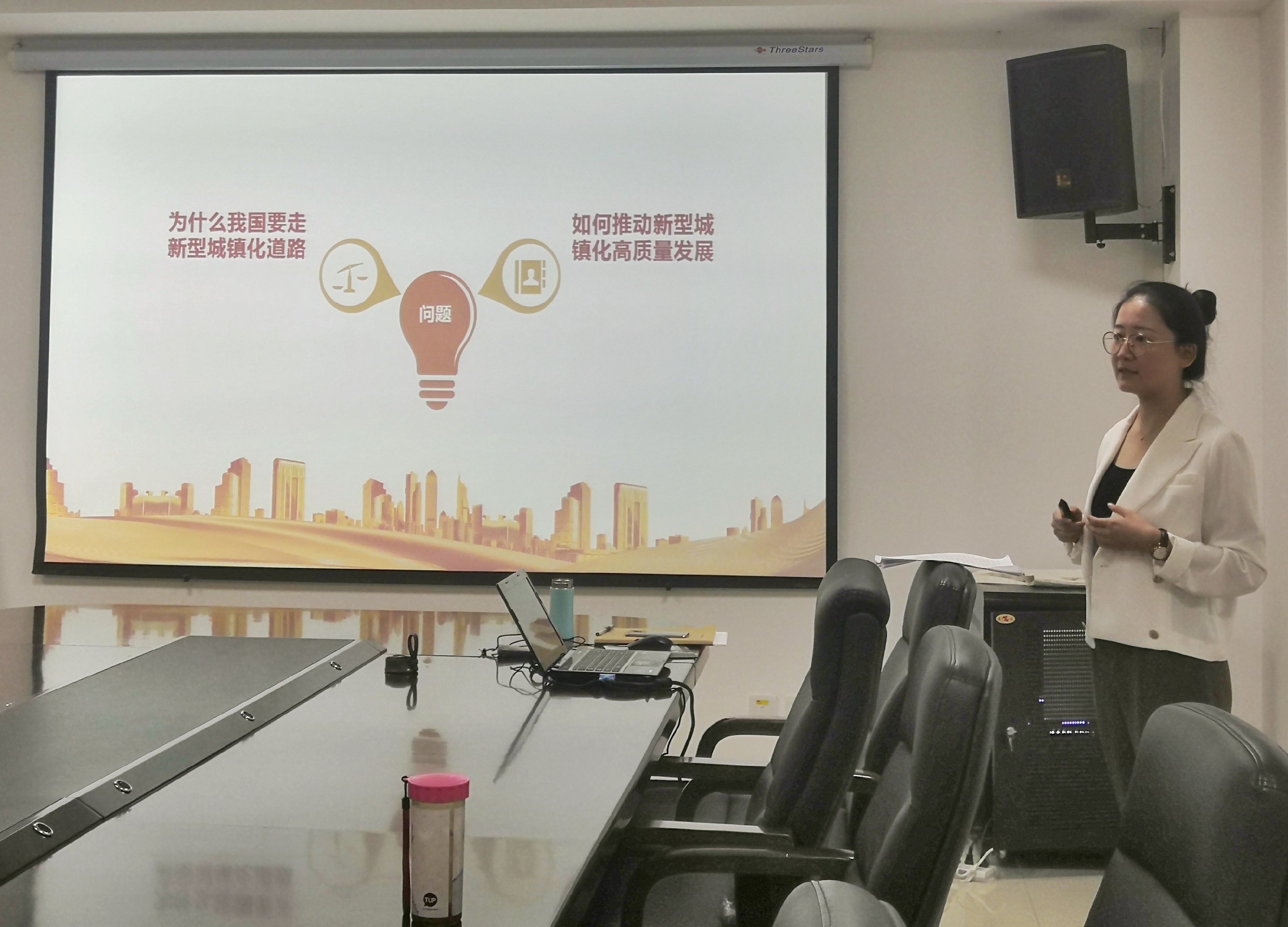 边娇老师围绕专题从我国城镇化的发展历程、走新型城镇化道路的现实依据及推动新型城镇化高质量发展三个方面进行了论述。专题试讲完毕后,全体教师逐一发言,着重从讲课提纲、授课内容、案例选择、课堂表达、课件制作等方面提出了针对性的意见和建议,达到了集思广益、共同提高的目的。石建莹主任在大家点评完毕后提出,青年教师一定要在教学上多下功夫,要坚持问题导向,了解学员需求,高标准高质量的精心备课、精细设计,要突出重点和亮点内容,在语言表达、教态教姿等方面不断提高。