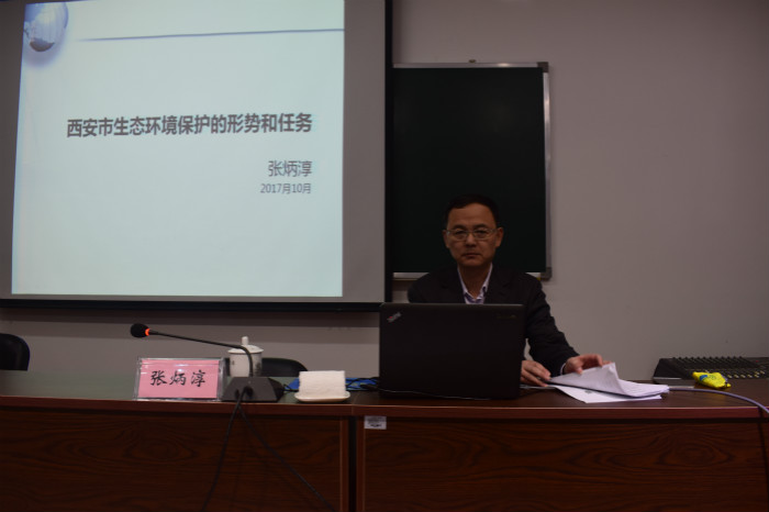 11月8日上午,西安市环境保护局副局长张炳淳同志应邀为第17期青年干部培训班和第5期优秀科级干部培训班作题为《西安市生态环境保护的形势和任务》的专题讲座。张炳淳同志从环境保护的背景、大气污染防治的形势和任务、水污染防治的形势和任务、土壤污染防治的形势和任务、绿色发展的案例分析及公众参与环境保护六个方面深入分析了西安市的生态环境保护现状。让学员进一步认识和理解十九大报告中提出的“全民共治”的环保要求,从自身做起,从部门和单位做起,提升环境保护意识,为西安的环境保护贡献一份力量。