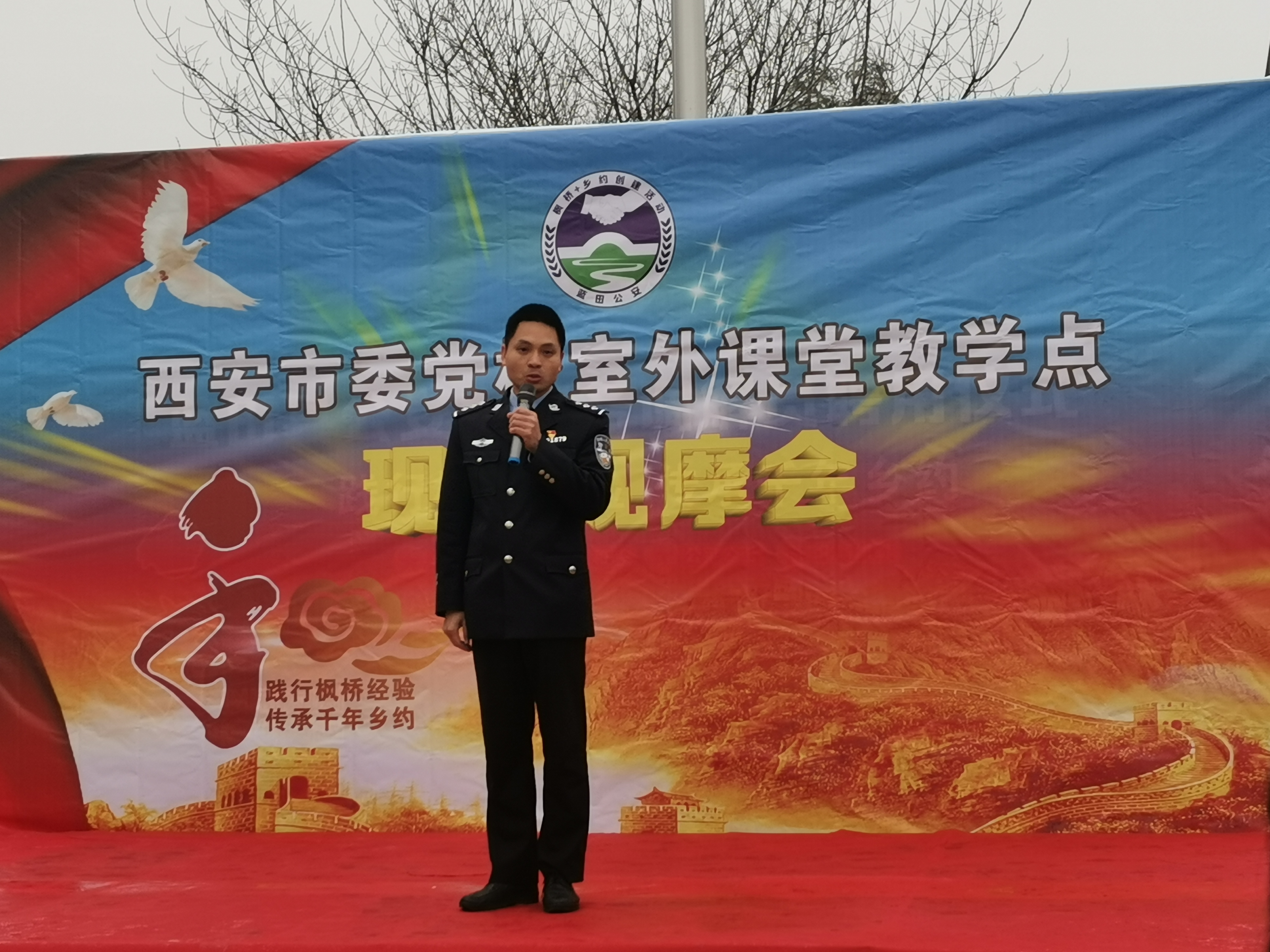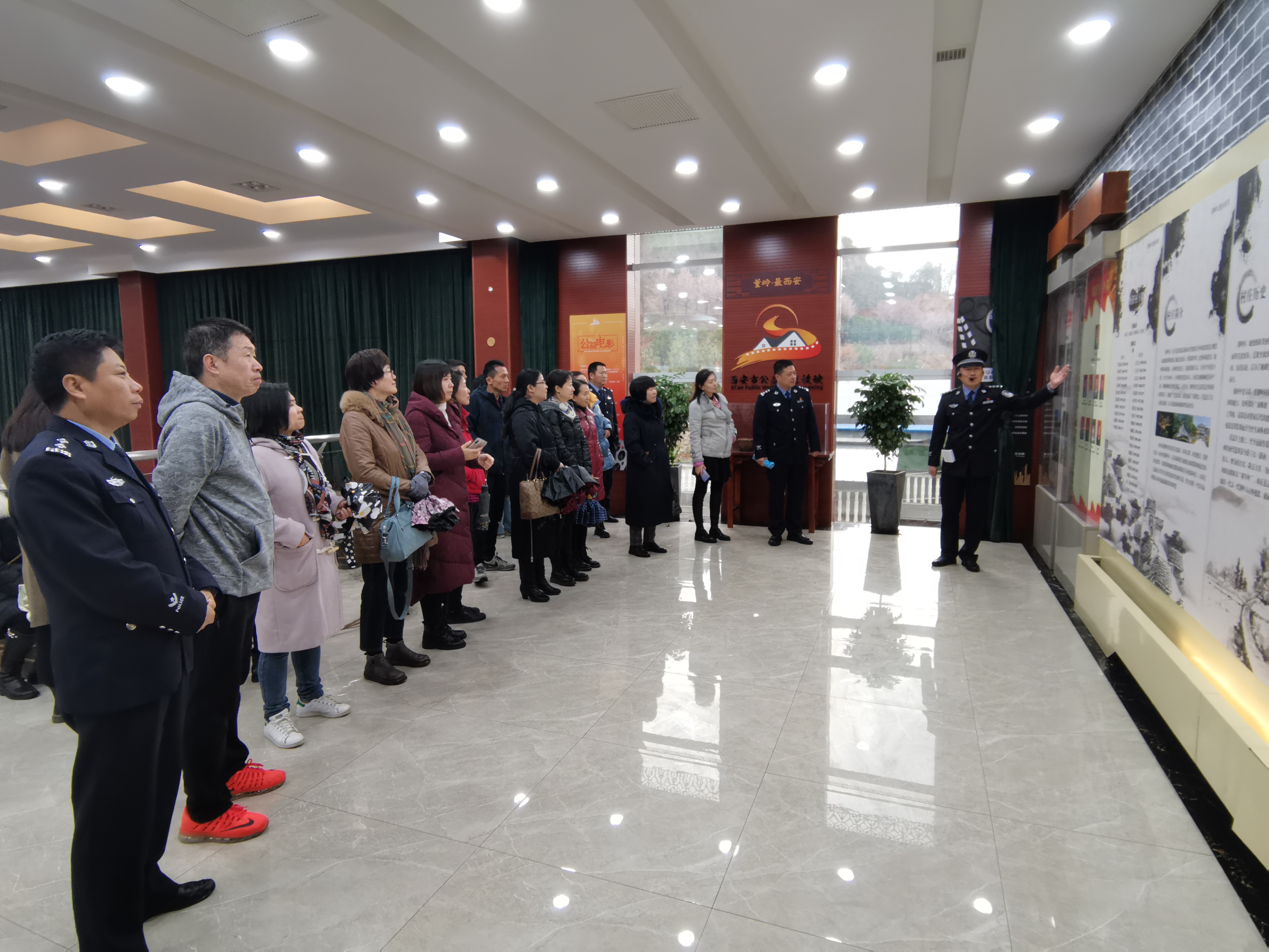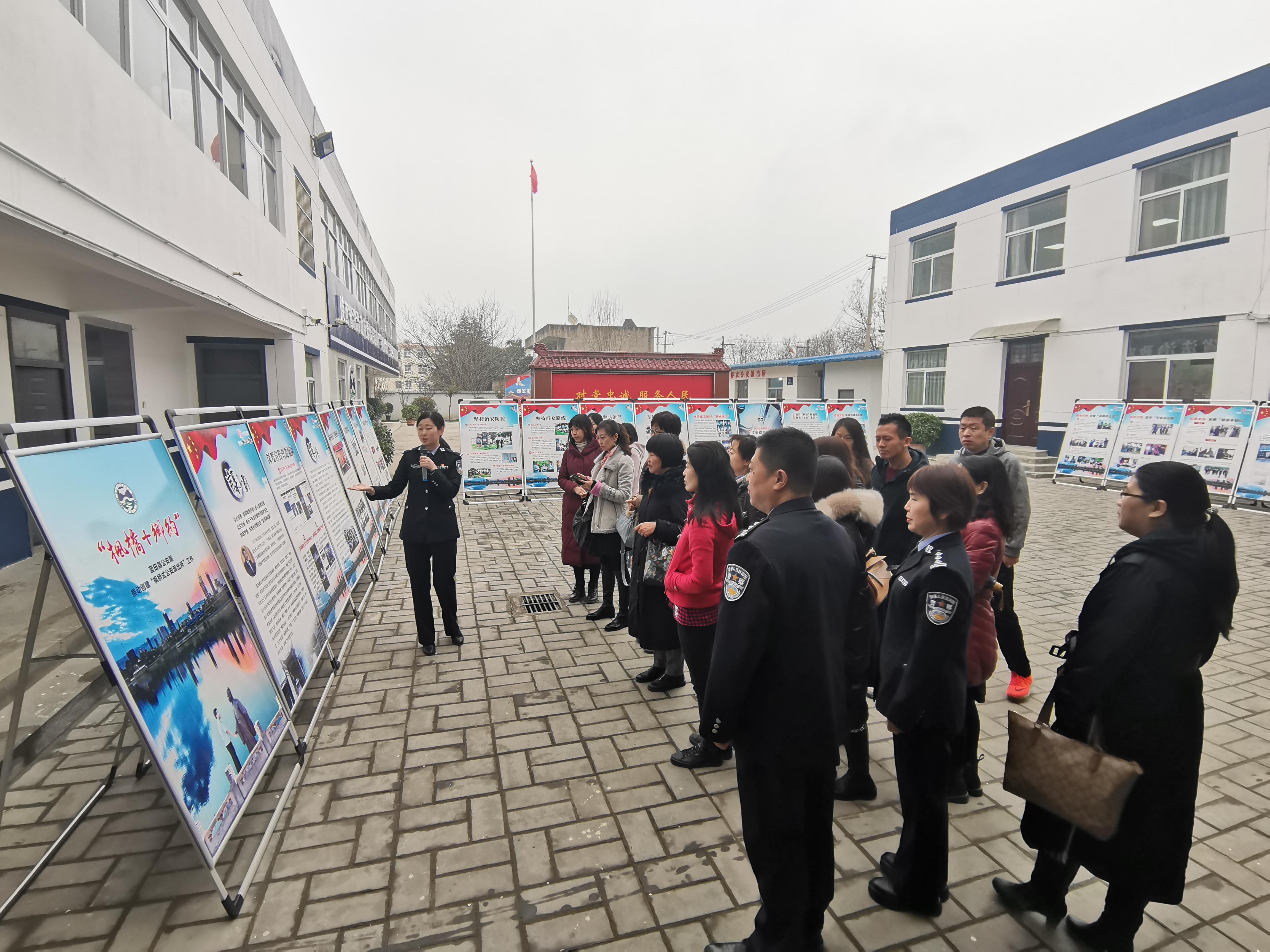 支部党员首先来到文姬路派出所进行实地调研,在民警王佳敏的讲解下,调研组参观了陕西省法治政府建设示范项目——“枫桥+乡约”警务模式实践基地及创建活动系列展板,聆听民警燕高飞深情讲述《我的枫桥故事》,观摩蓝田县公安局防暴处突的精彩演练。