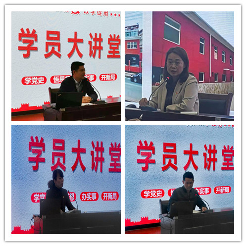 本次学员大讲堂以“学党史 悟思想 办实事 开新局”为主题,第21期中青年干部培训班和第34期新任处级领导干部任职培训班的四名学员分别做了分享交流。随后,党史党建教研部艾年武老师和薄谊萍老师分别点评。