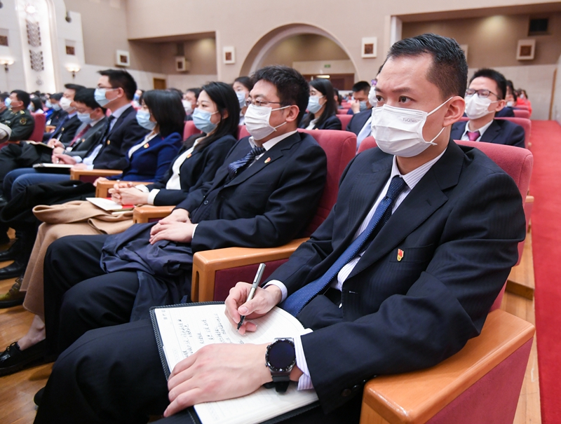 2021年3月16日,党史学习教育中央宣讲团首场报告会在京举行,图为参会人员在听报告。 新华社记者 陈晔华/摄
