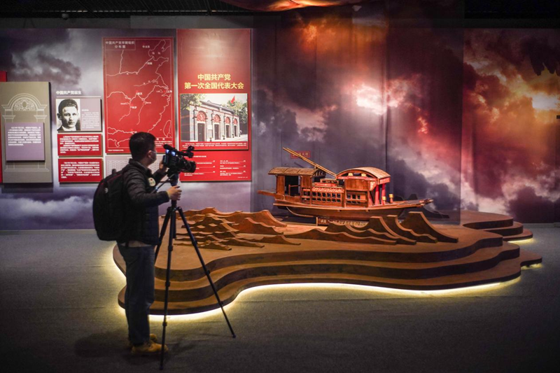 2021年3月9日,首都博物馆推出《伟大征程——庆祝中国共产党成立100周年特展》,展出展品约280组件。展览以中国共产党的诞生、土地革命、抗日战争、新中国成立四个历史时期为时间线索,用史料文物还原重大历史事件,展示了中国共产党从建党到建立新中国的革命历程。新华社记者 彭子洋/摄