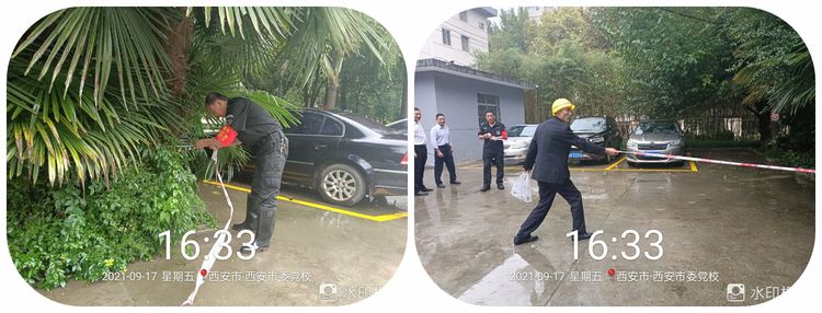 演练从防汛值班人员发现四号楼前水位到达警戒线的汛情后立即报告防汛指挥长开始,指挥长分析判断汛情后通知各保障小组按照既定应急防汛预案进入防汛位置,并有条不紊地开展防汛工作。