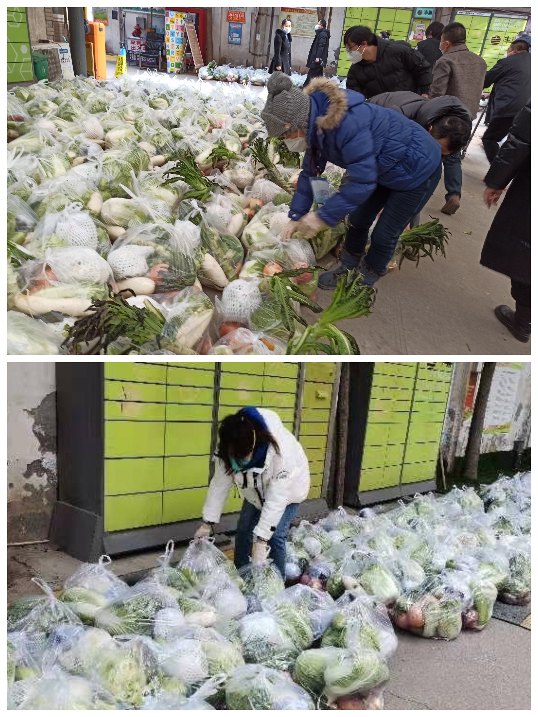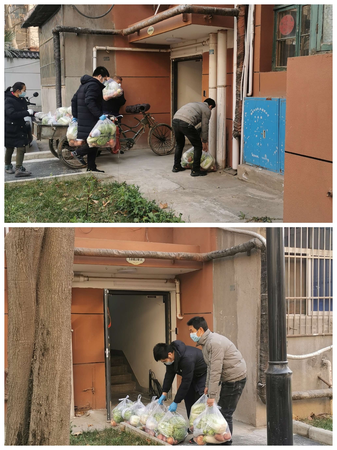 为了保障疫情期间广大居民的基本生活需要,解决居民“买菜难”的问题,雁塔区分时段、分社区统一安排配送蔬菜。12月30日起,西安市委党校包抓的巧克力公寓、未管所小区、市出租一公司家属院陆续收到了政府发放的免费蔬菜。为确保蔬菜能够及时送到居民手中,市委党校下沉干部加班加点开展配送工作。