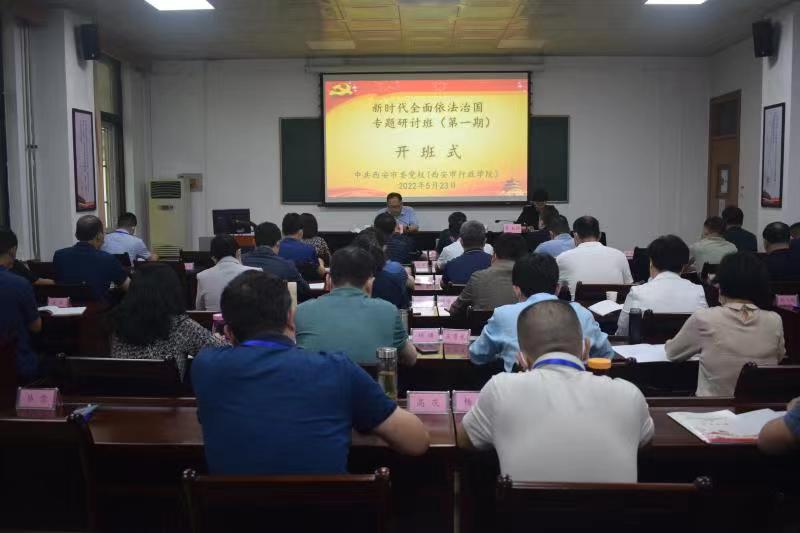 5月23日,中共西安市委党校(市行政学院、西安社会主义学院)分别举行了第36期新任处级领导干部任职培训班和新时代全面依法治国专题研讨班开班式。第36期新任处级领导干部任职培训班及新时代全面依法治国专题研讨班全体学员参加。