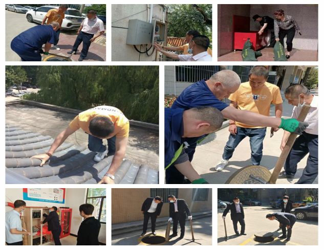 六是防汛抢险方面。5月16日,组织物业人员对全校雨水井、楼顶屋面,防汛物资等进行了检查。维修存在安全隐患的雨水井盖1个,清除雨水井杂物3桶,全面清理楼顶屋面树叶杂物,购置防汛沙箱1个,填装防汛沙袋35袋。