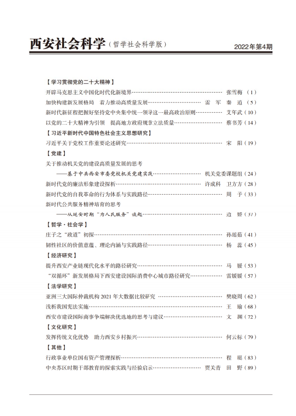 《西安社会科学》2022年第4期目录