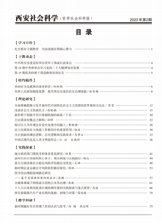 《西安社会科学》2023年第2期目录