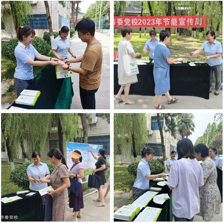 通过发放节能宣传册、节能小礼品、现场接受咨询等方式,以环境保护、节能降碳、绿色低碳为重点,向教职工及学员普及应对气候变化知识,宣传低碳出行、新能源产品、禁塑、生活垃圾分类、厉行节约、节水节电等内容,引导大家养成简约适度、绿色低碳的生活方式,助力“碳达峰、碳中和”目标实现。
