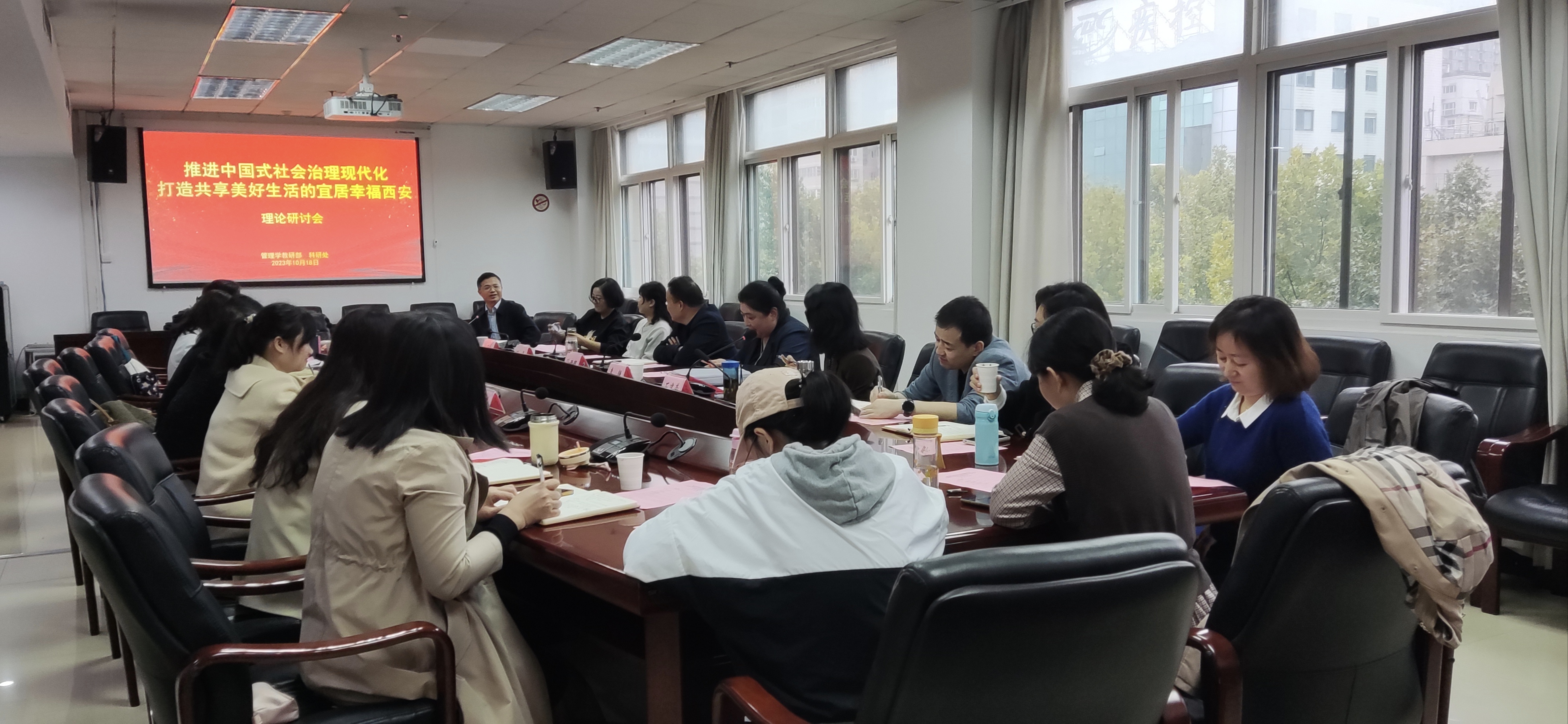 10月18日下午,管理学教研部联合科研处共同举办了“推进中国式社会治理现代化——打造共享美好生活的宜居幸福西安”学术研讨会,校务委员孙新朝出席,管理学教研部主任石建莹主持,管理学教研部全体教师、其他教研部相关教师、科研处全体人员参加。