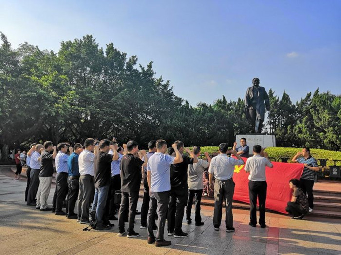 在深圳国贸大厦,学员们通过曾宇青副教授对国贸大厦建设的历史背景、建设过程和对深圳发展起到的重要作用的讲解,实实在在感受到“三天一层楼”的深圳速度带给人的震撼,以及深圳人敢闯敢试的拼搏精神。下午,学员们到深圳博物馆,观看了深圳改革开放四十年回顾和展望,并在邓小平同志雕像前重温入党誓词。