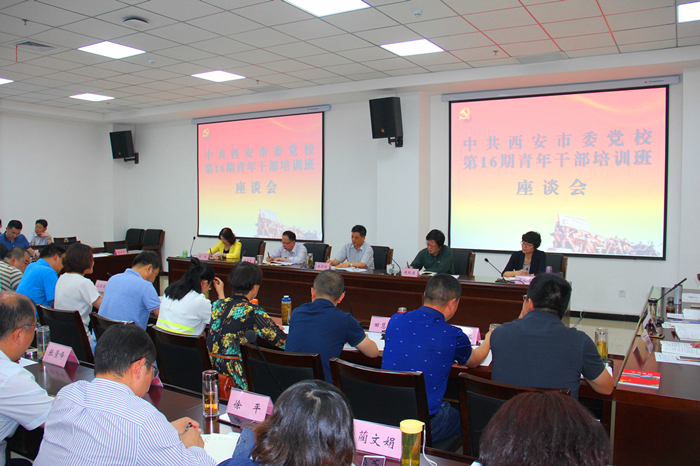5月24日下午,中共西安市委党校第16期青年干部培训班座谈会在综合楼101会议室举行。常务副校长王华旭,副校长史晓英、范建军出席,相关处室主要负责同志以及青干班全体学员参加座谈会。