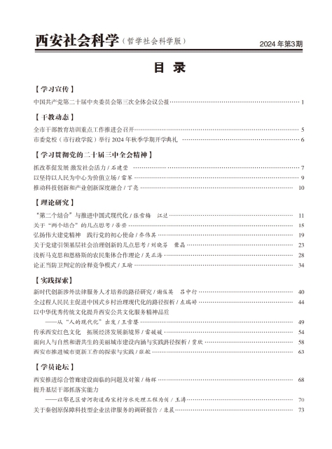 《西安社会科学》2024年第3期目录