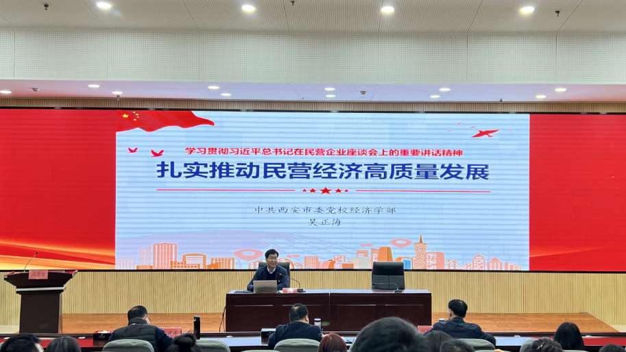 会上,经济学教研部教授吴正海以《学习贯彻习近平总书记在民营企业座谈会上的重要讲话精神 扎实推动民营经济高质量发展》为题,从讲话精神核心要义、西安民营经济现实状况及推动民营经济高质量发展路径等方面进行了深入解读。经济学教研部、统战理论教研部7位教师代表,从民营经济地位、营商环境优化、民营经济人士思想政治引领等方面做了交流发言。