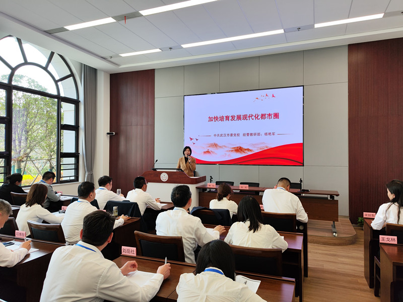 24日下午抵达武汉后,即举行了开班式,我校副校长刘红和武汉市委党校副校长张嵩出席开班式并作动员讲话,鼓励学员抓住难得机会专心学、潜心研、用心看。武汉市委党校杨艳军教授作了《加快培育发展现代都市圈》专题讲授,学员围绕主题、结合西安都市圈建设进行深入思考、积极研讨。