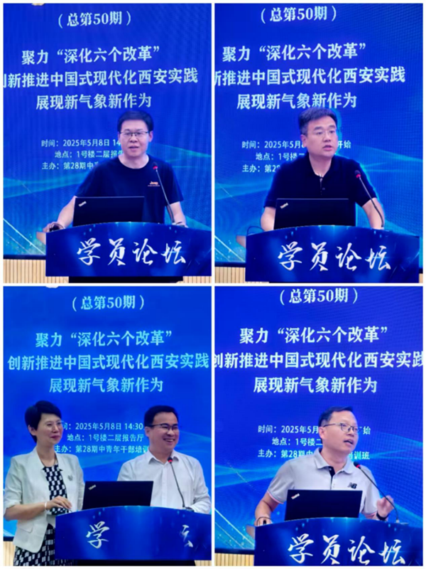 5月8日下午,中共西安市委党校(西安市行政学院)第50期学员论坛在1号楼二层报告厅成功举行。第28期中青年干部培训班学员以“聚力‘深化六个改革’,创新推进中国式现代化西安实践展现新气象新作为”为主题,围绕城市治理、产业招商、文旅融合、乡村振兴等方面展开深入研讨,为西安高质量发展建言献策。市委党校副校长孙新朝出席活动并讲话,第28期中青班学员肖鑫鑫、戴琦主持活动。