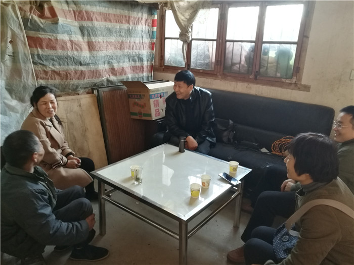 张钧巨书记与佘旦旦一家亲切交谈,共同商议新的一年扶贫计划,询问新房搬迁事宜,鼓励他们坚定脱贫信心。