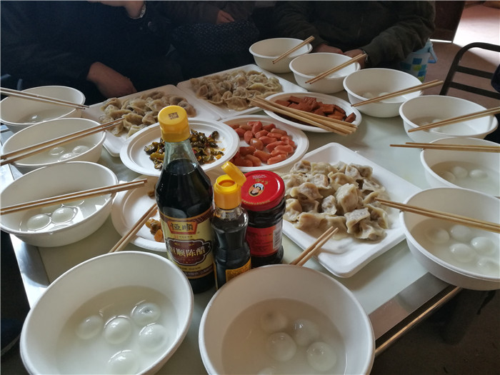 科社教研部党支部带来了汤圆饺子凉菜,与佘旦旦一家像亲人一般一起过节。