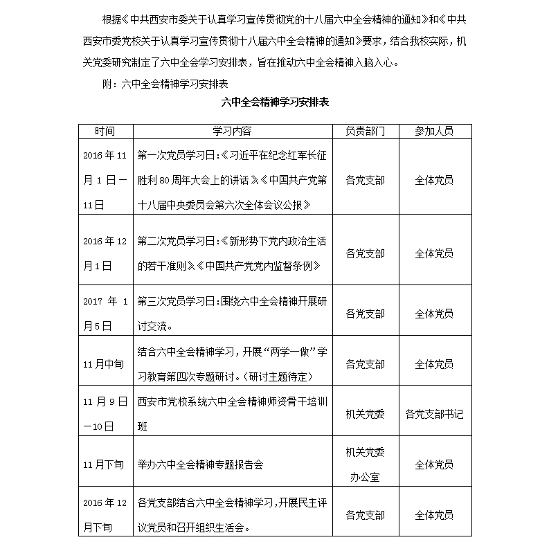 西安市委党校六中全会精神学习安排表