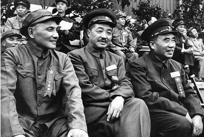 1949年,朱德、贺龙、邓小平(从右至左)出席全军运动会。
